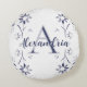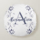 Cojín Redondo Blue Floral Personalized Monogram Name