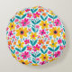 A round pillow adorned with bold, colorful flowers in warm yellows, pinks, reds, and teal, adding cheerful, modern charm to sofas, beds, and cozy reading spaces. A stylish, gift‑ready accent for lovers of bright florals and uplifting home décor.