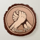 Medalla redonda de bronce con dos manos en lucha armada. Color de fondo personalizado. Texto personalizado en ambos lados.