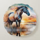 Cojín Redondo Caballo salvaje en una duna fresca al atardecer