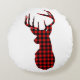 Cojín Redondo cabaña de campo cuadros rojo búfalo navidad ciervo