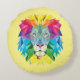 Diseño de cabeza de león geométrico arcoíris sobre amarillo. Los colores brillantes hacen un león majestuoso fantástico