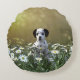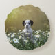 Un adorable cachorro dálmata blanco y negro se sienta tranquilamente en un campo de margaritas blancas.