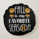 Pequeña calabaza marrón, hongos, ilustraciones botas de lluvia y el texto grande: La caída es mi temporada favorita.