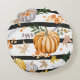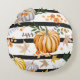 Cojín Redondo Calabazas naranjas de otoño, flores, hojas, rayas