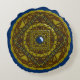 Esta mandala temática de Capricorn representa una piedra lapis lazuli rodeada por el símbolo del signo, la constelación y el símbolo alquímico de la Tierra entre filigree y tejidos.