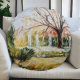 Cojín Redondo Casco pintado a mano acuarela árboles naturales am