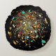 Cojín Redondo Celebración de Fuegos Artificiales Dorados y Confe