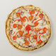La pizza clásica de queso se reparte con la mezcla de salsa y después se cuelga uniformemente con la mozzarella, el cheddar y el beicon. Añadamos algo de "gusto" a su sala de estar ahora.