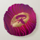 Elevate your space with this personalized glam round throw pillow designed to make a statement. Featuring a bold zebra-inspired pattern in rich magenta and plum tones, accented with a luxe gold-look centerpiece and a custom initial, this pillow brings high-fashion energy into any room.