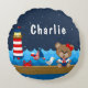 Cojín Redondo Chica náutica Oso Rojo y Azul Marino