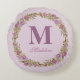 Esta almohada redonda de personalizado infantil presenta una corona floral acuosa con un fondo morado claro. Añada fácilmente el nombre y el nombre inicial de su pequeña niña para crear un acento único para la sala de guarderías de su hijo. Elija entre una amplia gama de tipos de letra para adaptarse a sus preferencias. También puede ser un regalo ideal para eventos como la ducha para bebés. Visita https://www.zazzle.com/store/bubsngiggles para ver más de nuestros diseños únicos.