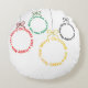 Celebrate the season with this elegant minimalist Christmas design featuring hanging ornament circles created entirely from festive typography. Each ornament is formed with the phrases “Merry Christmas” and “Happy New Year,” arranged in colorful circular shapes and finished with delicate bows.