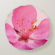 Hermosa foto en flor rosa sobre un cojín redondo.