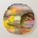 Después de que la lluvia se detuvo esta mañana de setiembre, decidí visitar una granja de calabazas. En el exterior había algunas mesas y bancos de madera, todavía húmedos de la lluvia. Unas cuantas hojas brillantes estaban sobre la mesa. El sol comenzó a aparecer a través de las nubes, iluminando brevemente la mesa, permitiendo que estos colores de otoño se representaran maravillosamente.