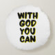 Este diseño de almohadas redondas tiene las palabras "Con Dios que puedas" en un estilo de burbuja impreso más letras negras y contorno de sombras amarillas con un estilo tipográfico en este tema basado en la fe. Esta almohada está hecha con tela de alta calidad nuestras almohadas son suaves y sin arrugas la cubierta es lavable por máquina.