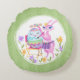 Cojín Redondo Conejo conejo conejo rosa de pascua y huevo |
