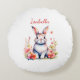 Un lindo conejo sentado en un parche de hermosas flores rosadas y follaje de acuarela.