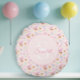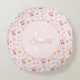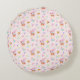Transforma una guardería o sala de juegos en un jardín de cuento de hadas con esta encantadora almohada redonda. Contra un suave fondo rosa bebé, un conejo rosa toca la trompeta en medio de un mundo caprichoso de mariposas púrpuras, corazones sonrientes y flores de jardín.