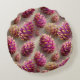 Cojín Redondo Cones de rosa rosado de invierno con acentos dorad