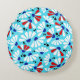 Cojín Redondo Confetti de la Conefluente sobre el azul tropical