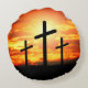 Cojín Redondo Cruces, hojas de silueta de sol pintadas-67137
