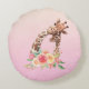 Cojín Redondo Cuidada jirafa acuarela mamá y bebé