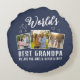 Custom World's Best Grandpa 3 Photo Round Pillow. Show your grandpa how much he's loved with this personalized throw pillow. Featuring 'World's Best Grandpa' text, this pillow allows you to customize it with three family photos and the names of his grandchildren. It's the perfect sentimental gift for Father's Day, his birthday, Grandparent's Day, or just because. This cozy and unique pillow will be a treasured keepsake, reminding him daily of his special bond with family.