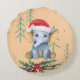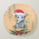 This charming Christmas round pillow features a sweet baby elephant wearing a Santa hat, surrounded by pine greenery and snowy trees. A perfect holiday stocking for animal-loving kids and safari lovers. Personalize for a special keepsake they’ll treasure every year.