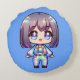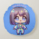 Cojín Redondo Cute Chibi Monograma Holográfico sobre Azul |