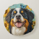 El Cute Dog Pinting Rustic Sunflower Butterflies Round Pillow Cojín decorativo Cushion presenta una pintura adorable de un perro con girasoles amarillos y mariposas. Perfecto como regalo para los amantes del perro. Creado por Evco Studio www.zazzle.com/store/evcostudio