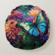 Cojín Redondo Dahlias Y Mariposa Verde Irlandesa