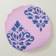 Cojín Redondo Desplazar el arte de Damask I azul sobre rosa