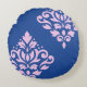 Cojín Redondo Desplazar el arte de Damask I rosado en azul