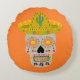 Esta impresionante almohada redonda presenta una imagen de diseño gráfico de un cráneo inspirado en el Día de los Muertos de México. El cráneo es de color gris pálido y lleva un sombrero amarillo. Tiene dientes de oro y girasoles mexicanos, también llamados Tithonias< en lugar de ojos. El sombrero tiene un cactus encima y está cubierto por motivos de remolinos de bonito y pimientos de chile rojos y verdes. El cráneo está cubierto de flores de color bonito de diferentes tipos.