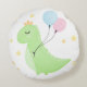 Un dinosaurio lindo con una corona y globos festivos, todo en suaves colores pastel. Personalizar a su gusto.