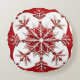 Cojín Redondo Diseño intrincado de copo de nieve rojo