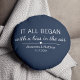 Donde todo comenzó... Almohada linda con la ubicación y la fecha en que se conocieron, con un corazón adorable. Elija su propio color y personalice este diseño personalizado con sus propios nombres y texto. Regalo perfecto para contar su historia de amor en el Día de San Valentín, su aniversario o boda, y celebrar el comienzo de algo especial.