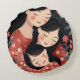 Este ilustracion captura un momento tierno entre una madre y sus dos hijos, envueltos en un abrazo amoroso. La obra de arte está adornada con vibrantes estampados florales en tonos rojos, negros y blancos, que simbolizan calidez, afecto y armonía. Las expresiones suaves y los ojos cerrados de los personajes transmiten paz y profunda conexión, enfatizando el amor incondicional de una madre.