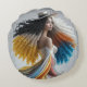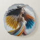 Cojín Redondo Elegancia en contraste: mujer de cabello rizado