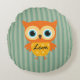 Cojín Redondo Elegante búho amarillo líneas verdes guardería