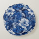 Una almohada de lujo con un elegante diseño floral vintage azul y blanco.