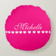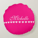 Cojín Redondo Elegante Monograma Corazón Blanco Rosa