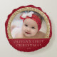 Cojín Redondo Elegante Rojo Dorado Navidad del bebé por primera