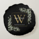 Cojín Redondo Elegante verde oro Monograma negro