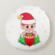 Cojín Redondo elfo navidad, pino, poinsettia y estrellas