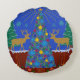 Cojín Redondo Escena personalizada del árbol de navidad del reno