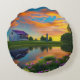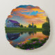 Cojín Redondo Estanque de techo púrpura para granjas al amanecer