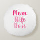 La esposa de mamá, el guion rosado y blanco personalizado texto lindo y elegante almohada redonda moderna. Personalizable completo de texto rosa, fondo blanco. Un gran regalo para mamá por el día de la madre o su cumpleaños.