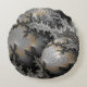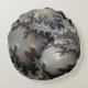 Un objeto esférico con una superficie reflectante se sitúa de manera prominente entre patrones complejos, de tipo fractal, con varios matices de gris, negro y oro. Los patrones intrincados aparecen casi como un paisaje texturizado, mientras que la esfera actúa como una lente que distorsiona y comprime los detalles circundantes.